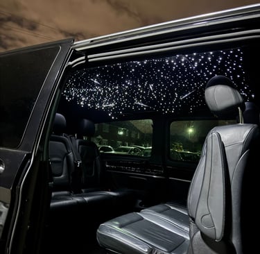 Our starlight headliner doesn’t just add light — it transforms your interior into a sky full of stars. Once it’s on, passengers can’t help but sit back in awe.
