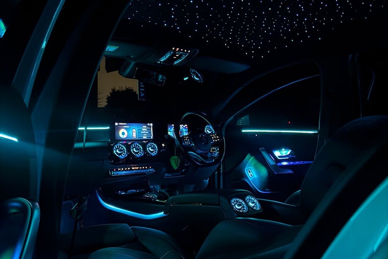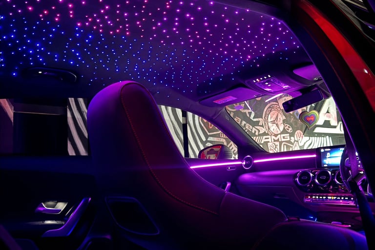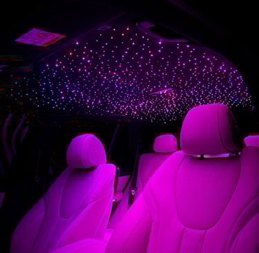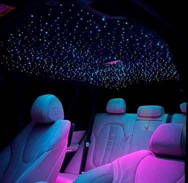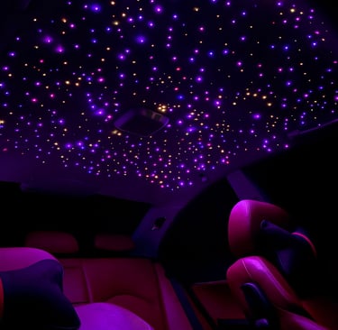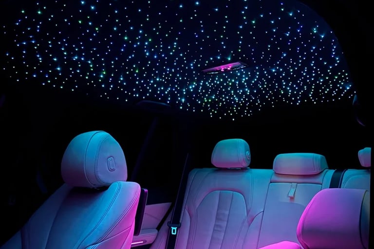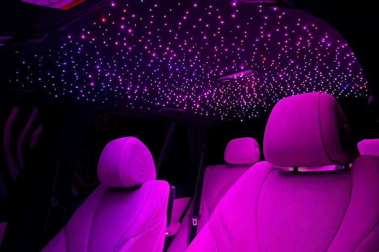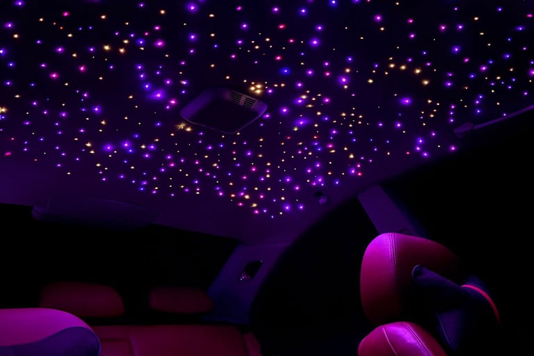 Choose from Standard, Twinkle, or Shooting Stars, with custom LED options for panoramic or sunroofs.